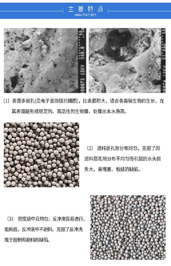陶粒濾料在曝氣生物濾池處理微污染水具有掛膜快 處理效率高,耐低溫 耐沖 耐磨等優(yōu)點(diǎn)。