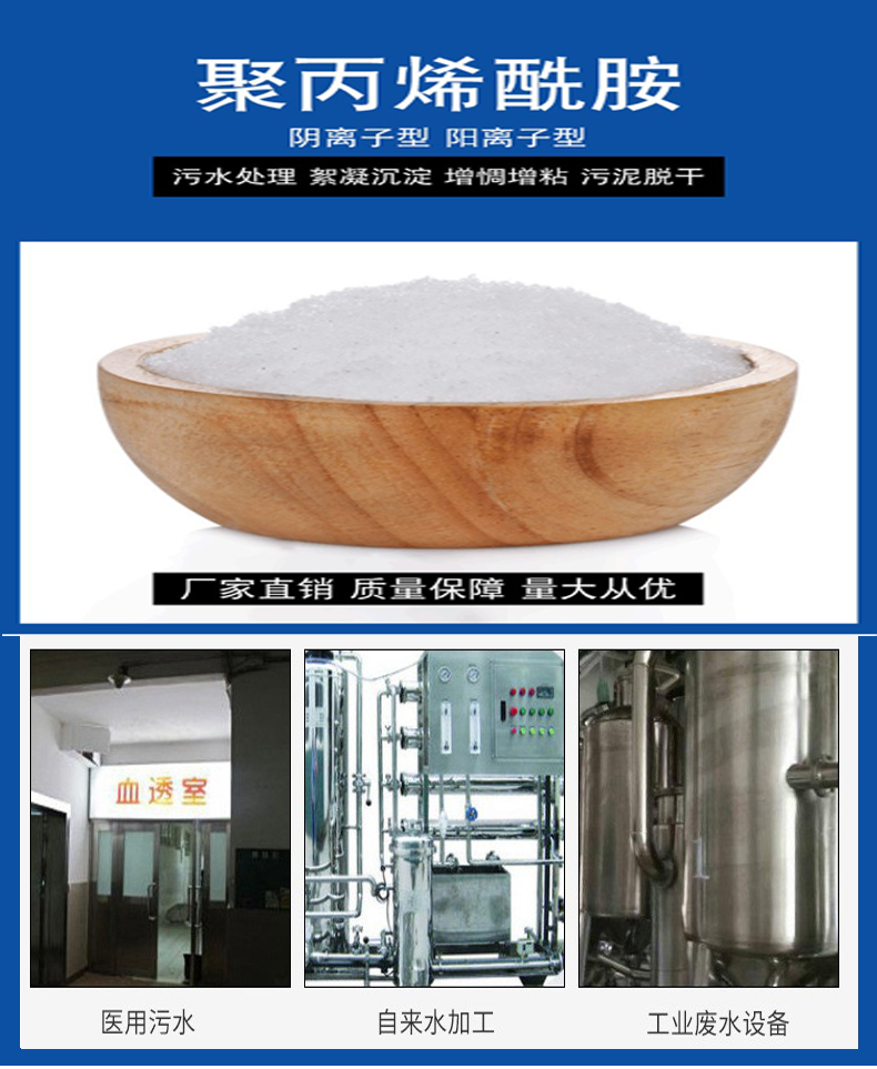 聚丙烯酰胺 有陽(yáng)離子聚丙烯酰胺 陰離子聚丙烯酰胺 非離子聚丙烯酰胺。陰離子聚丙烯酰胺脫水效率高,泥脫水處理效率高。陰離子聚丙烯酰胺洗煤 洗砂絮凝效果快。非離子聚丙烯酰胺用途廣泛 使用范圍廣。