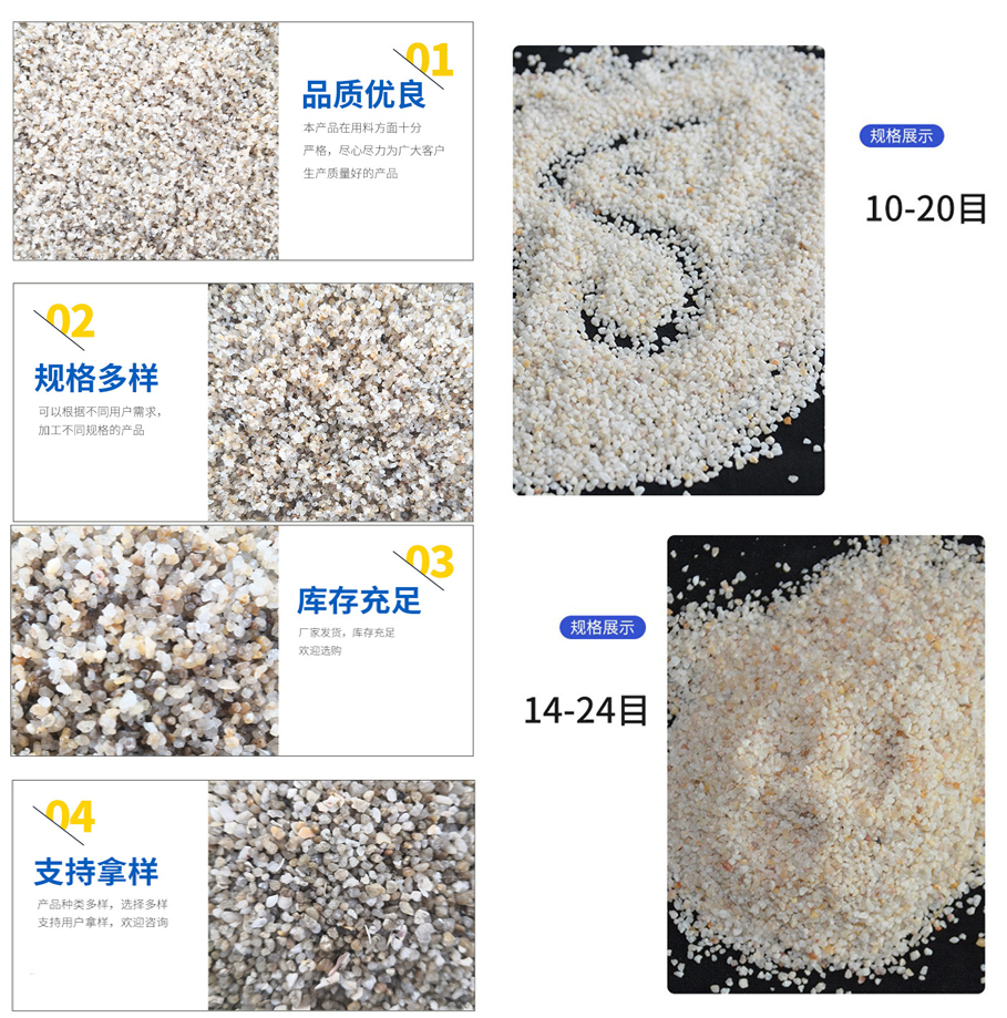 石英砂有——普通石英砂  精致石英砂 酸性石英砂 機(jī)制石英砂 天然海砂,有現(xiàn)貨歡迎下單;